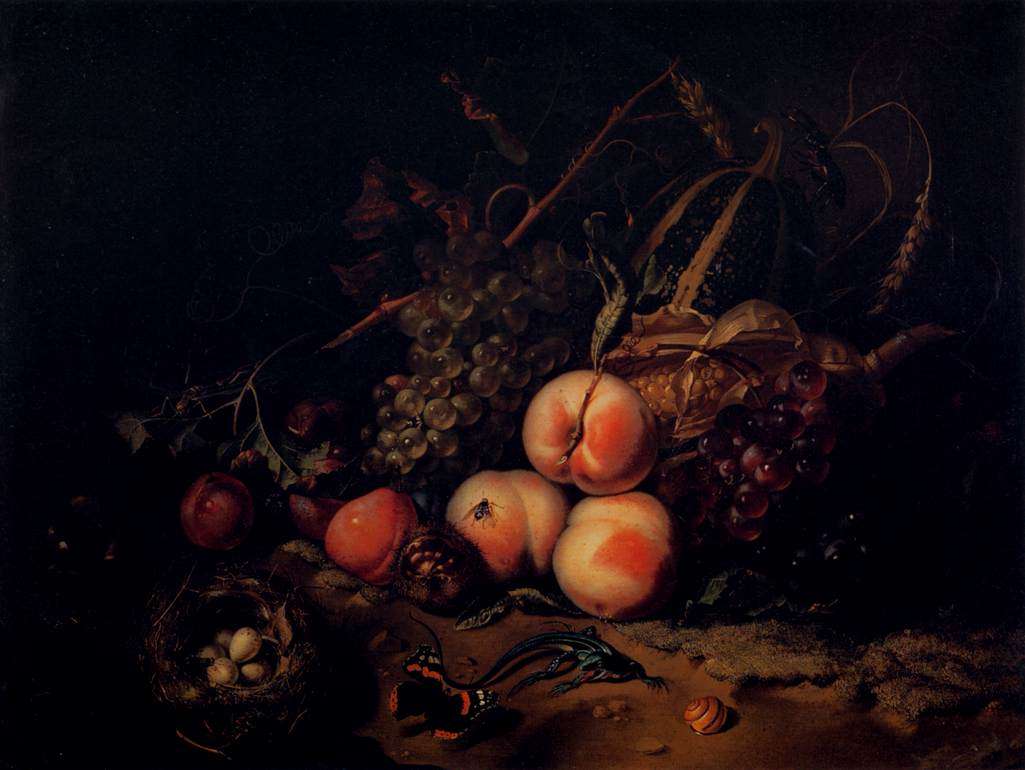 Rachel Ruysch – Stilleben mit Früchten und Insekten, 1711
