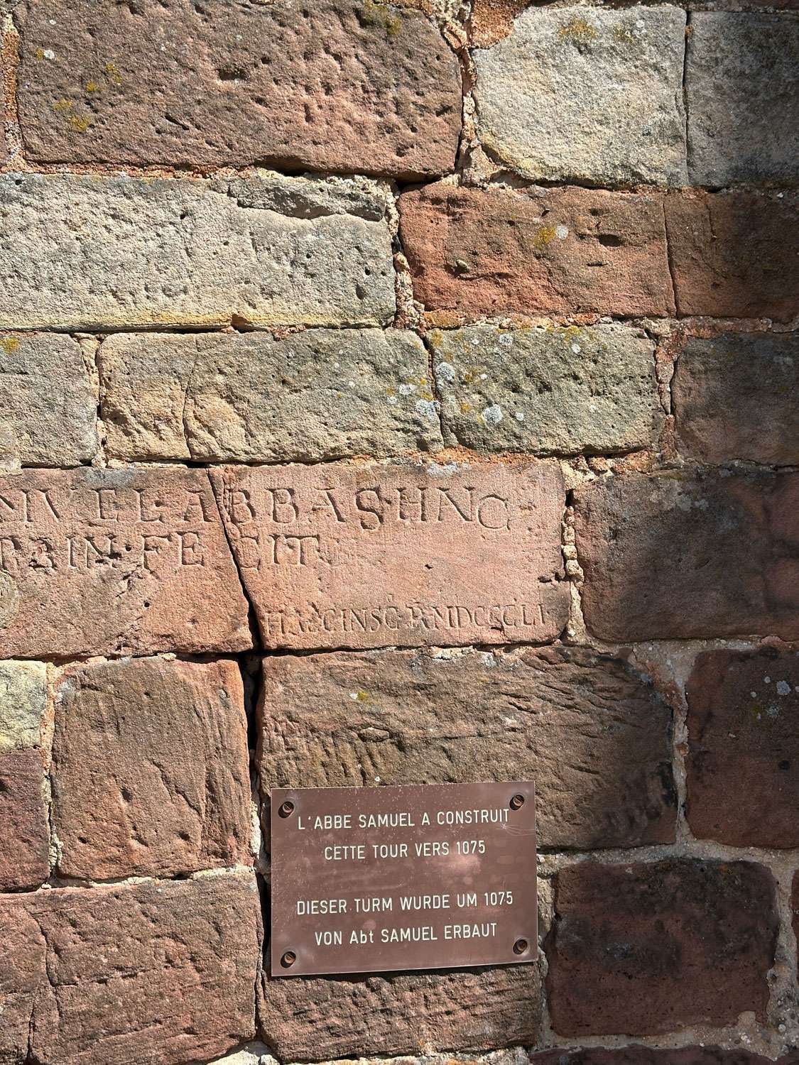 Er gehört zu den ältesten sichtbaren Teilen der Kirche St. Peter und Paul in Wissembourg. Der viereckige Westturm stammt aus der romanischen Klosterkirche des 11. Jahrhunderts. Eine Bauinschrift nennt das Jahr 1075 und den Abt Samuel: Samuel abbas hanc turrim fecit – Abt Samuel ließ diesen Turm errichten.